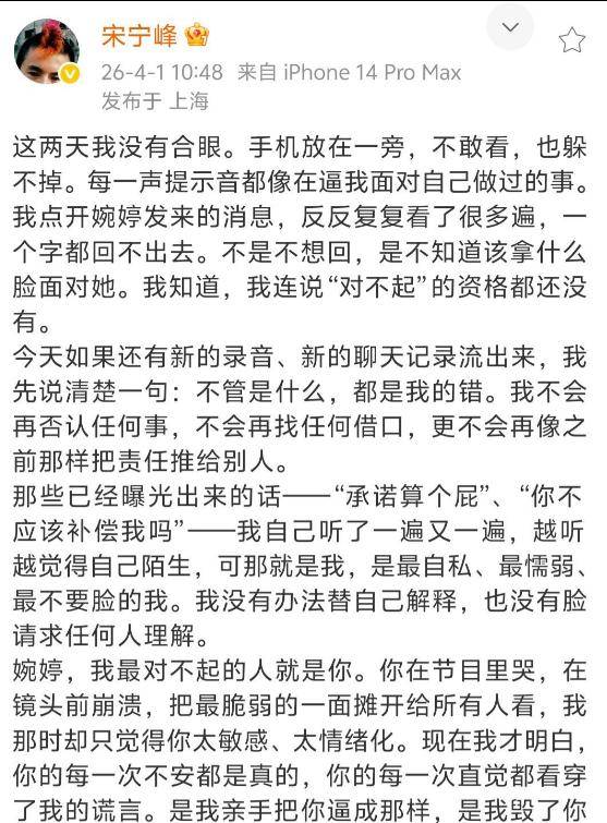 事发前三天,宋宁峰还正在社交平台分享与女儿的平居,与灌音中的自私姿势酿成显明反差。 4月1日,宋宁峰揭晓长文抱歉,直面统统...