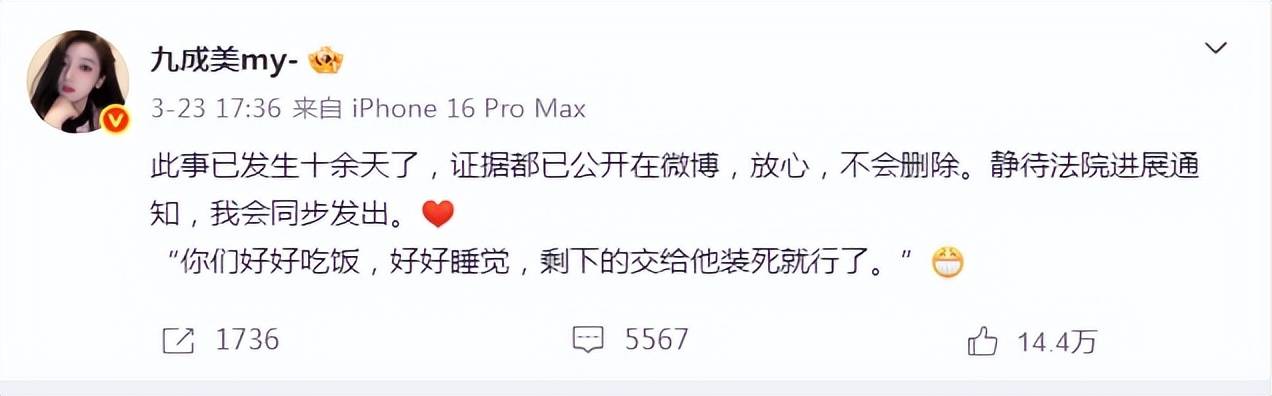 现正在的议论境况里,女生站出来实名锤前任,要担当的压力真的太大了。不但要手里有实打实的证据,还要面临男方粉丝的网暴,又有 “念红念疯了” 的恶意料到。九成美敢直接实名下场,手里决定是握着真凭实据的,假使只是为了维权,那议论,即是她现正在最有力的军器。