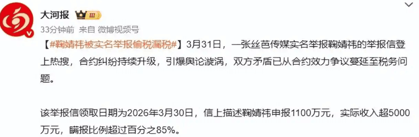 事务发生正在3月30日。一份实名举报把鞠婧祎推上了风口浪尖,举报实质直指她一年税务申报数额仅1100万,和终年收入所有对不上。有人拿出她半年收入高出5000万的数据,质问终于税交到哪儿去了。网友们舆情声一浪高过一浪,究竟文娱圈对偷税漏税一直零容忍,哪怕顶流,挂上这标签,就很难再翻身。